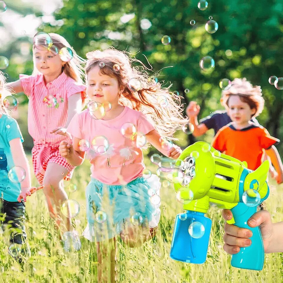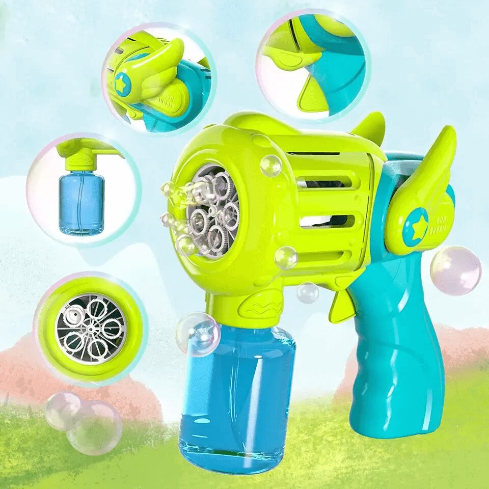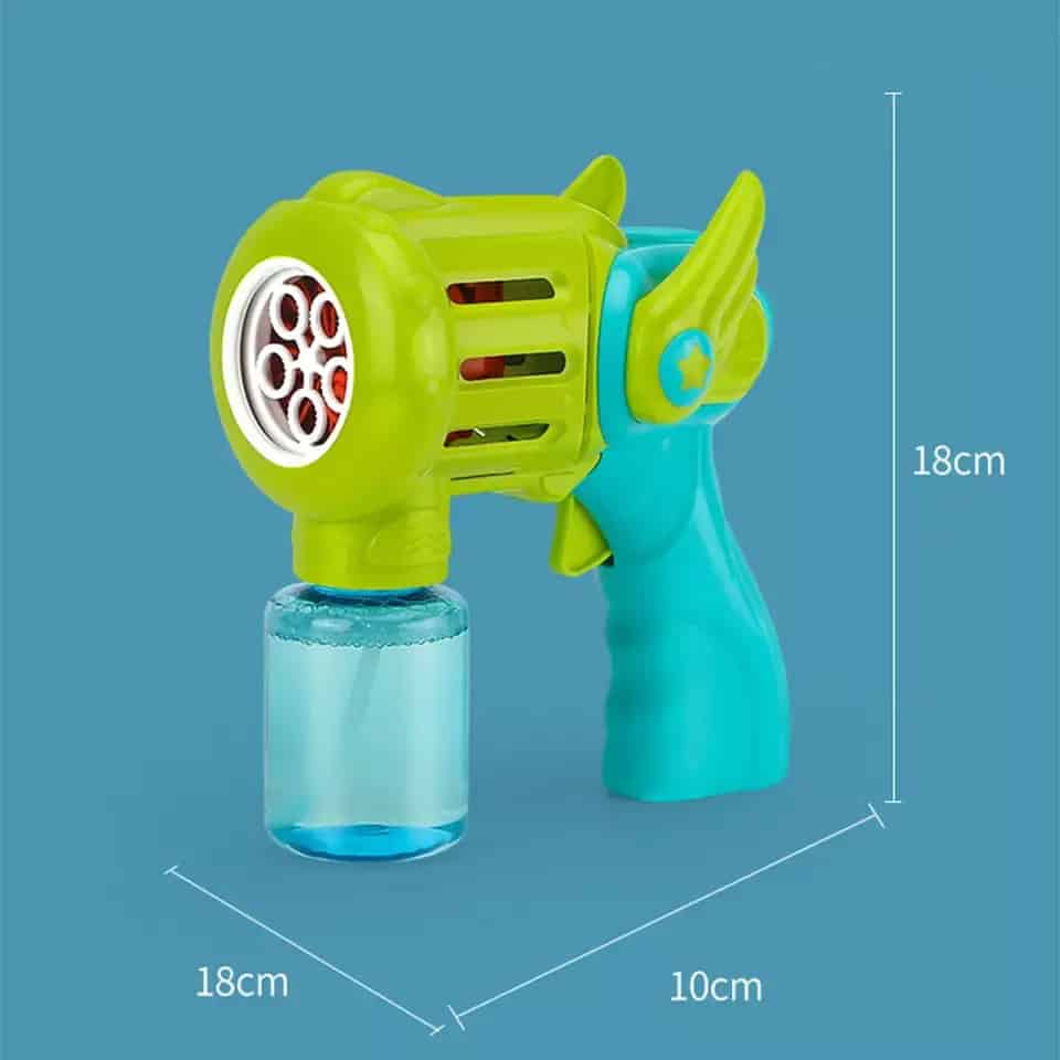 Avec ce joyeux pistolet à bulles, vous tirez des dizaines de bulles simultanément dans les airs ! Le pistolet est en plastique et est livré avec un flacon de produit à bulles. Le pistolet fonctionne avec 3 piles AA (non incluses). Vous vissez le flacon de produit à bulles sur le pistolet et appuyez sur la gâchette, puis attendez 15 secondes afin que le produit puisse être pompé. Ensuite, le ventilateur commencera à tourner et l’air se remplira de bulles. Avec ce pistolet à bulles, vous vivrez des heures de plaisir ! Il est aussi très amusant à emporter à vos fêtes et festivals préférés.