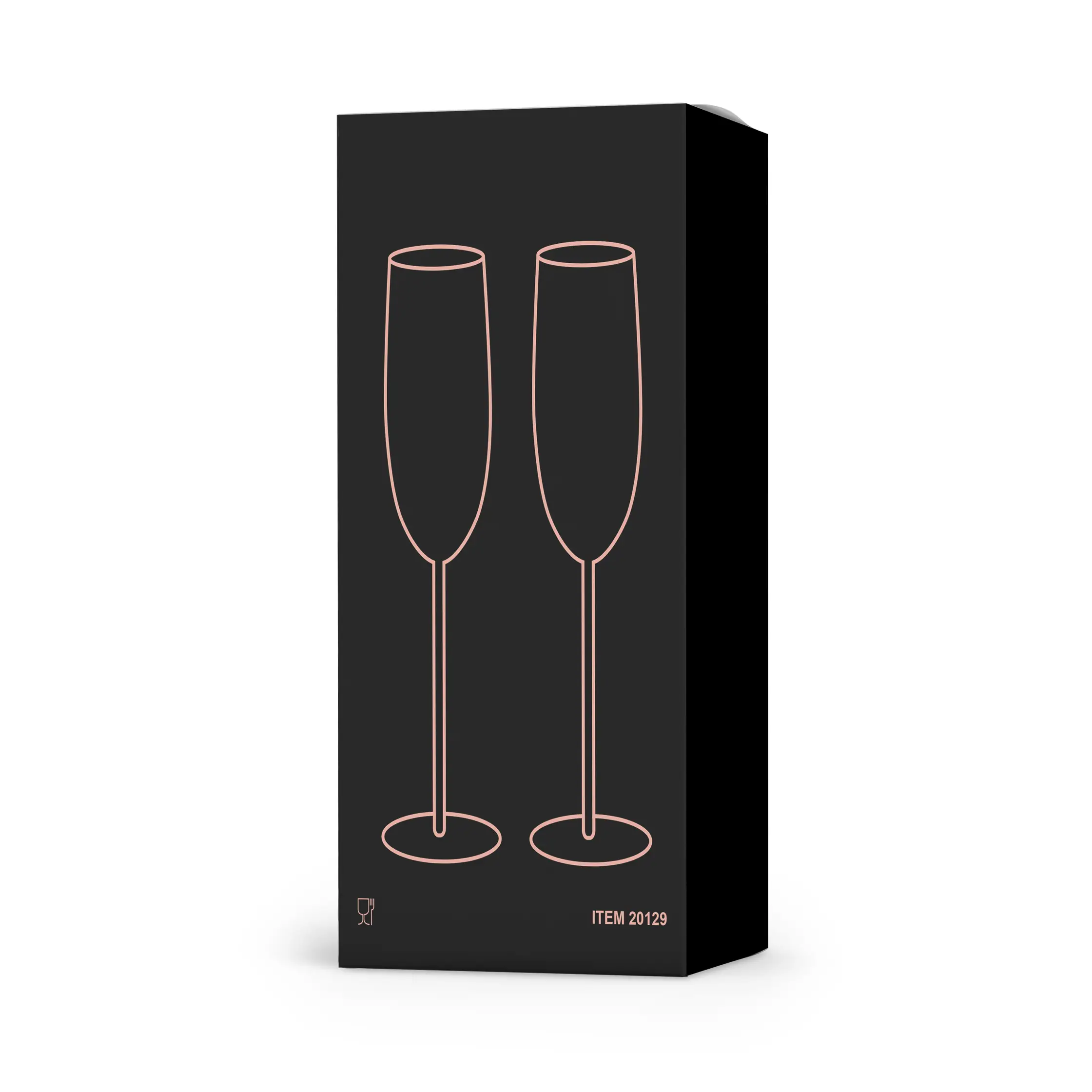 Enrichissez votre expérience de dégustation avec notre ensemble de 2 flûtes à champagne, chacune d’une capacité généreuse de 270 ml et dotée d’un design qui respire le style et le raffinement. Ces verres sont fabriqués à partir d’acier inoxydable de haute qualité et se distinguent par leur magnifique revêtement galvanisé en cuivre et leur finition brillante, ajoutant une touche de chaleur et d’élégance à votre expérience de dégustation. La subtile teinte or rose rend ces verres encore plus remarquables. Ils sont magnifiquement présentés dans une boîte design noire exclusive, ce qui en fait une idée cadeau exceptionnelle pour ceux qui apprécient les belles choses de la vie. Ces verres offrent le parfait équilibre entre style et fonctionnalité. Que vous organisiez un dîner formel, célébriez une occasion spéciale ou profitiez simplement de vos boissons préférées, ces verres or rose ajoutent une touche de luxe à chaque instant. Adoptez l’art de la dégustation raffinée avec cet ensemble magnifique de 2 verres.