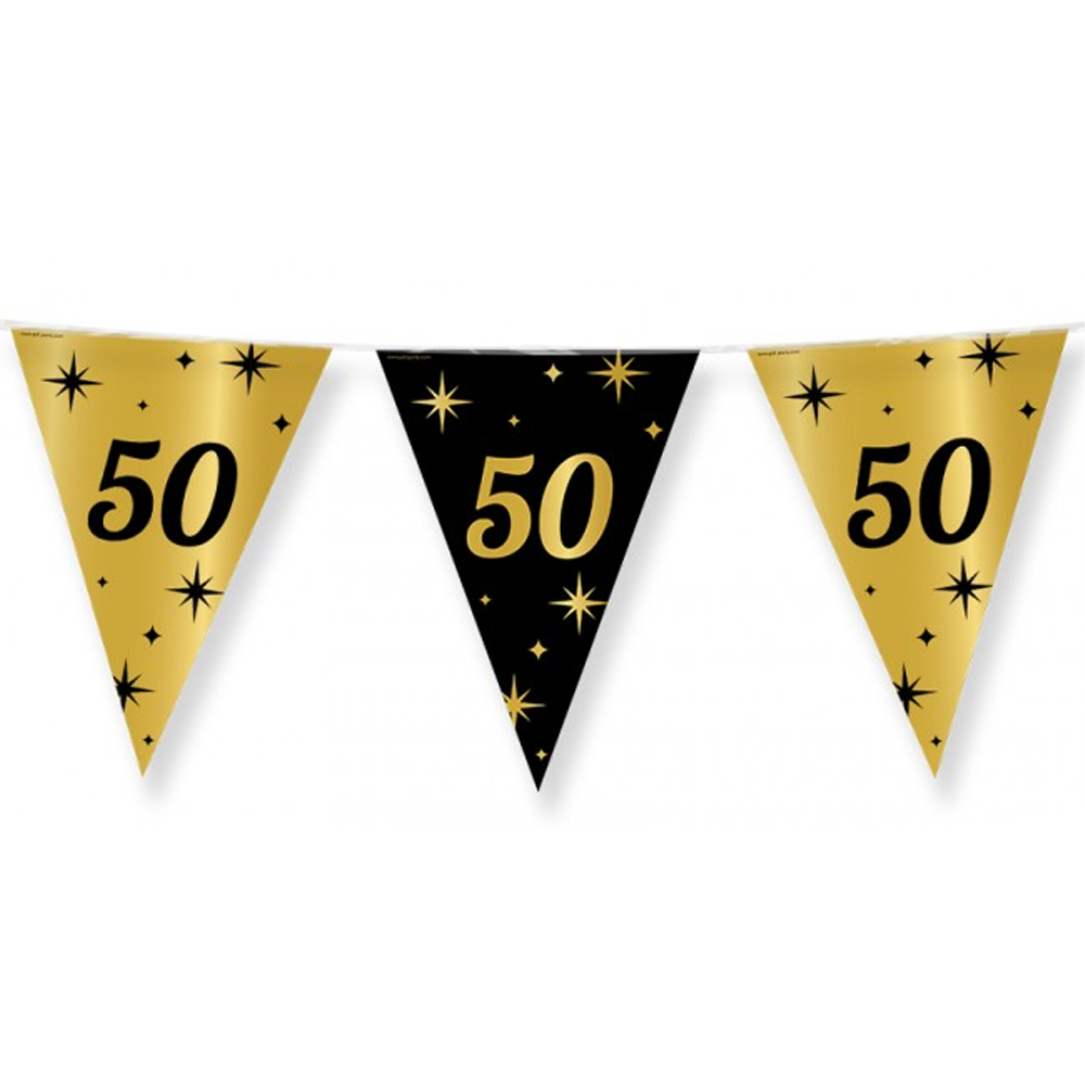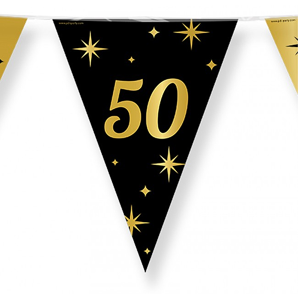 Votre 50e anniversaire est un jalon important que vous ne voudrez jamais oublier. Avec cette magnifique guirlande noir et or, vous ajoutez une touche de gaieté à ce jour spécial. La guirlande a un design chic, est fabriquée en matériau de haute qualité et mesure 10 mètres de long.