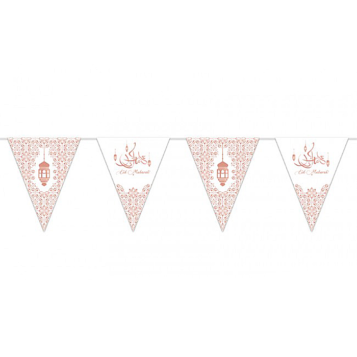 Célébrez-vous l’Aïd al-Fitr ou l’Aïd al-Adha ? Alors, cette guirlande est incontournable pour votre décoration festive ! La guirlande mesure 6 mètres de long et est fabriquée en plastique robuste. Les dimensions d’un fanion sont de 27 x 22 cm (L x l). Sur la guirlande figure la traditionnelle salutation islamique ‘Eid Mubarak’, soit ‘Bonne fête’. Cela rend la guirlande adaptée à une utilisation pendant l’Aïd al-Fitr et l’Aïd al-Adha.
