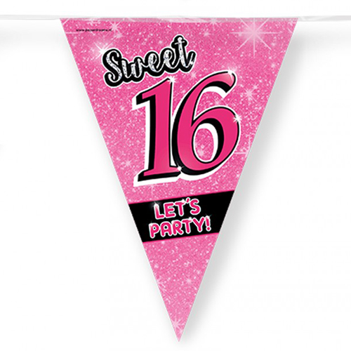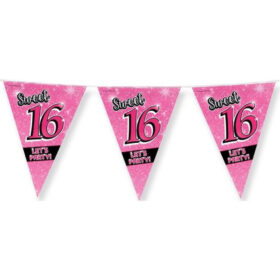 Tu fêtes bientôt ton 16e anniversaire ? Rends ta fête sweet 16 encore plus festive avec cette superbe guirlande rose ! La guirlande porte le texte ‘Sweet 16 Let’s Party!’ et mesure 10 mètres de long. Tu peux facilement l’accrocher en nouant les extrémités à quelque chose. Ainsi, tu peux accrocher les fanions à des murs, des plafonds, des tables ou partout où tu le souhaites. Cela rendra l’espace encore plus festif. Cette magnifique guirlande rose rendra ton 16e anniversaire encore plus festif. Hip hip hourra !