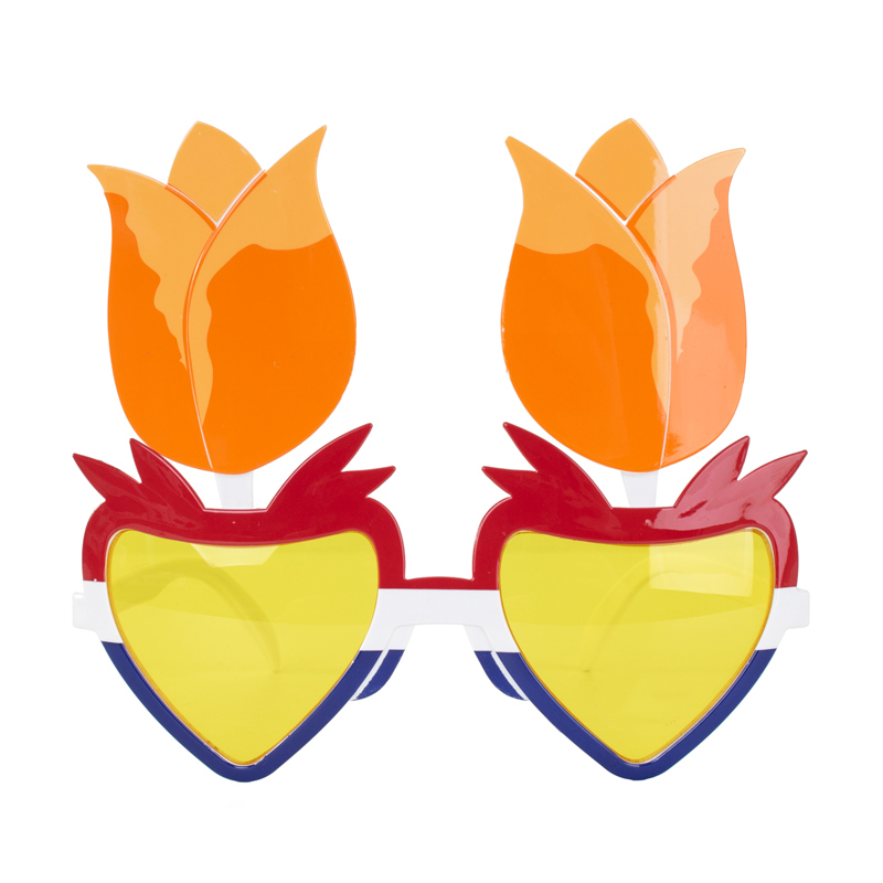 - Style : Lunettes de fête orange avec tulipes et verres en forme de cœur