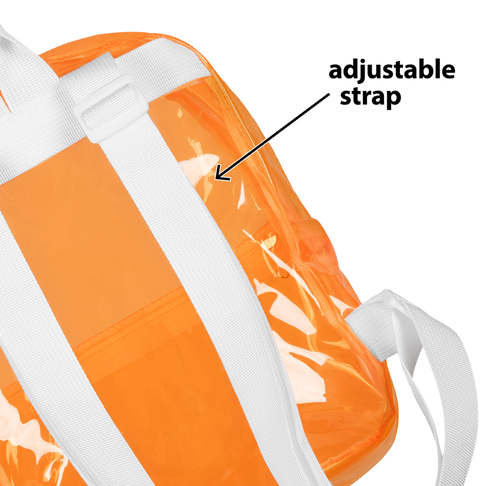 Ce sac à dos transparent orange néon est la combinaison parfaite de style et de fonctionnalité pour les festivals, événements et jours de fête. Grâce à sa couleur vive et son design transparent, vous serez assuré d’être visible et tout à fait prêt(e) pour une journée festive.