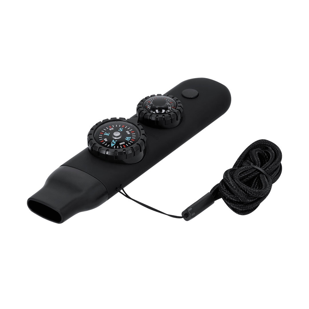 La boussole intégrée vous aide à déterminer la bonne direction lors de randonnées, trekkings ou activités de survie. Les indications claires du Nord, Sud, Est et Ouest offrent une orientation rapide. - Sifflet de secours