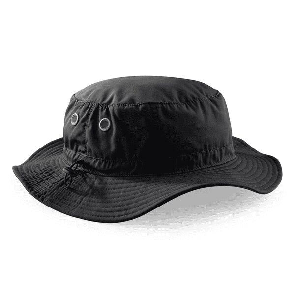 Ce bob noir audacieux est le complément parfait de votre garde-robe ! Le chapeau est composé de 65 % polyester et 35 % coton et offre une protection solaire ultime grâce à la protection UPF50+. Le bob dispose d’ouvertures de ventilation sur le côté qui aident à garder la tête fraîche.
