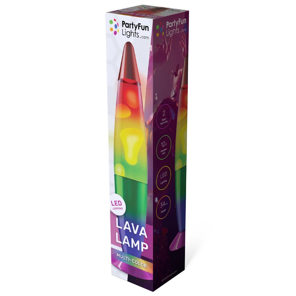 Le boîtier aux couleurs arc-en-ciel renforce l’effet visuel et fait de cette lampe à lave un objet design remarquable, que la lampe soit allumée ou éteinte. Grâce à son format compact, elle trouve parfaitement sa place sur une table de nuit, un bureau, une étagère ou une table.