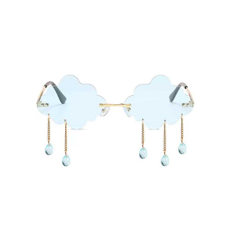 Complétez votre tenue de festival avec cette paire de lunettes de soleil en forme de nuages de pluie! Les lunettes ont des verres en plastique bleu en forme de petits nuages de pluie avec des gouttelettes. Avec ce design branché, vous attirerez à coup sûr l’attention parmi tous les fêtards et apporterez une touche ludique à votre look. La monture sans bord des lunettes de soleil offre une sensation légère et confortable lors du port, tandis que le revêtement UV400 des verres protégera vos yeux des rayons du soleil nocifs. Que vous alliez à la mer pour la journée, que vous souhaitiez égayer votre tenue d’été ou vous éclater à votre festival préféré, ces lunettes de soleil sont l’accessoire parfait. Le design léger assure un port confortable tout au long de la journée. Avec ces lunettes de soleil nuage à la mode, complétez entièrement votre tenue de festival !