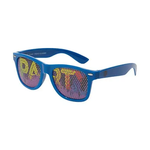 Ces lunettes de soleil à sténopé branchées sont un incontournable pour tout événement et offrent une protection UV-400 (sans effet de diffraction). Les lunettes à sténopé ont une monture bleue avec un design Party multicolore. Cachez vos yeux derrière ces lunettes cool avec des trous à sténopé. Les lunettes parfaites pour la saison des festivals !