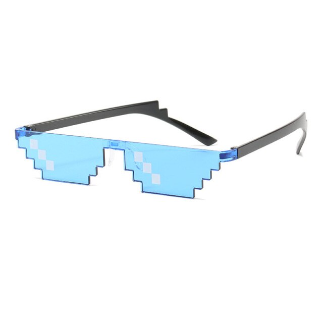 Ces lunettes de soleil Minecraft 6 bits t’aident à te démarquer lors des fêtes et festivals. Également pour les Nerds auto-proclamés, les blogueurs tendance Thug Life et les apprentis-gangsters, les buveurs de boissons énergisantes ou les haters ! Les lunettes sont en plastique, ont des verres bleus et des branches noires. Complète ton look de festival avec ces amusantes lunettes Thug Life !