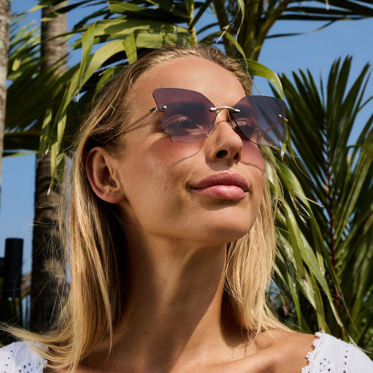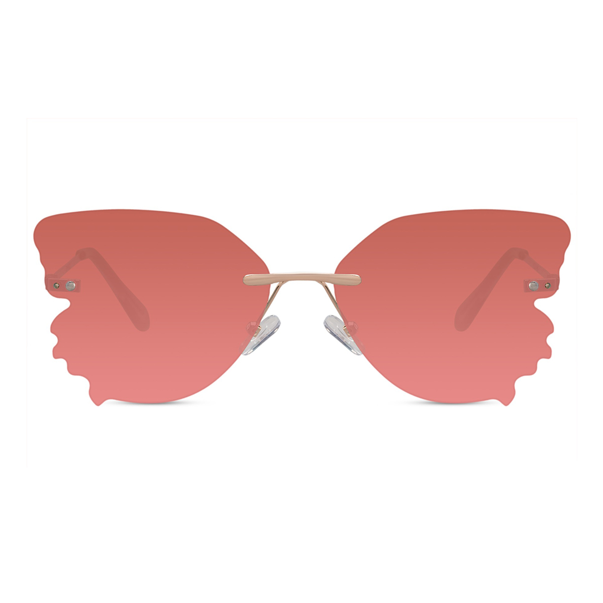 Avec ces lunettes de soleil dorées en forme de papillon, vous êtes prêt(e) à briller. Élégantes et audacieuses, parfaites pour une journée de festival ensoleillée, pleine de musique, de couleurs et de liberté. Leur forme gracieuse, combinée à la monture sans rebord, fait de ces lunettes un véritable accroche-regard. Les verres rose foncé offrent une protection UV400 (catégorie 2), protégeant efficacement vos yeux contre les rayons UVA et UVB nocifs. Que vous dansiez au soleil ou que vous vous relaxiez dans l’herbe : vous aurez un style incroyable tout en restant protégé(e). La monture sans rebord est fabriquée en acier inoxydable et les verres en polycarbonate solide, pour des lunettes conçues pour durer. Que vous optiez pour un look bohème ou futuriste : ces lunettes apporteront à coup sûr une touche unique à votre tenue. Parfait pour toutes celles et ceux qui osent se démarquer !