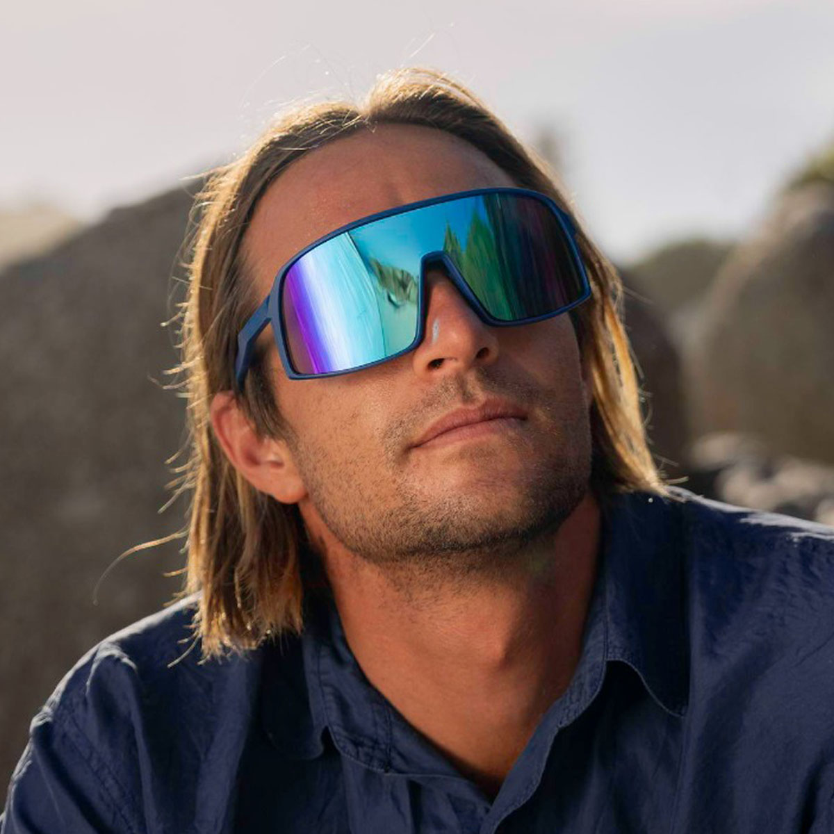 Découvrez une protection solaire élégante avec nos lunettes de soleil de sport bleues aux verres miroirs bleus. Ces lunettes de soleil allient style et fonctionnalité pratique. Les verres miroirs complètent parfaitement le design tout en réduisant les reflets et en favorisant une vision claire, même en plein soleil. Ces lunettes ont été conçues pour offrir un confort optimal, perceptible à chaque détail. La monture légère permet un port sans effort, tandis que les branches bleues assurent une tenue ferme, quelle que soit la forme de votre visage. Ainsi, vous n’avez pas à craindre qu’elles glissent. Que vous souhaitiez rehausser votre style, protéger vos yeux ou simplement ajouter une touche de confiance à votre look, nos lunettes de soleil de sport bleues aux verres miroirs bleus sont le choix parfait.