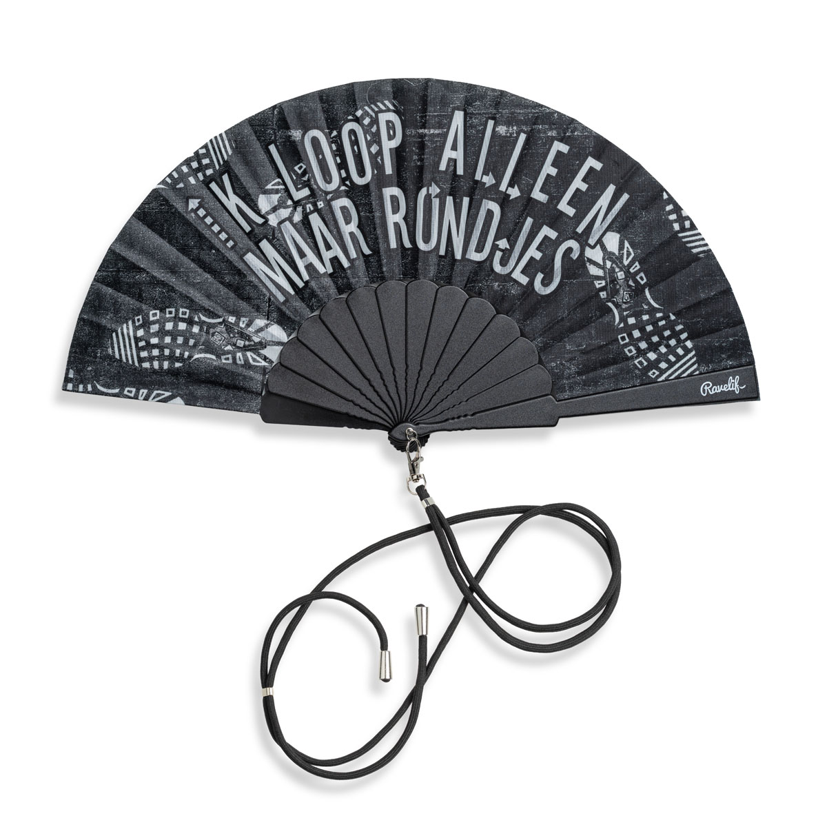 La phrase “Ik Loop Alleen Maar Rondjes” est désormais une citation connue des festivals, née de l’humour et du chaos des longues journées où chacun finit par se perdre ou tourner en rond sans fin avec ses amis. Avec cet éventail, vous emportez un morceau de la culture festival avec vous. Chaque tour est différent !