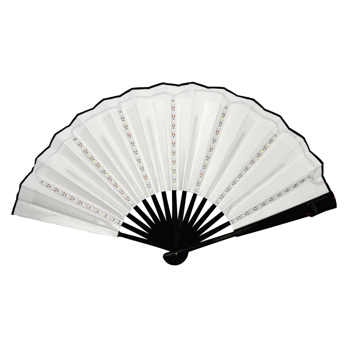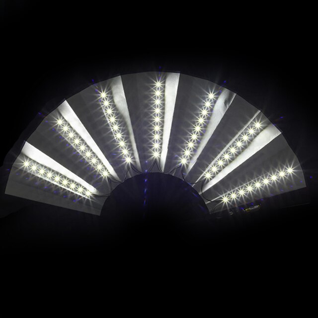Lors d’une chaude journée de festival, un éventail à main est indispensable pour se rafraîchir un peu ! Aimez-vous être au centre de l’attention ? Alors cet éventail XXL grand avec éclairage LED blanc est parfait pour vous ! L’éventail espagnol est fabriqué en plastique avec une toile en polyester et est extra robuste. Avec une largeur de 62 cm et une hauteur de 32 cm, cet éventail est extra grand et apportera donc encore plus de fraîcheur ! L’éventail fonctionne avec 2 piles bouton (incluses) et vous pouvez facilement allumer et éteindre l’éclairage avec l’interrupteur marche-arrêt sur le boîtier de la batterie de l’éventail.